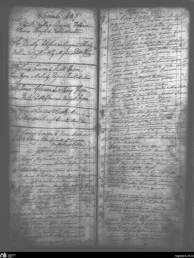 Galbally and Aherlow; County of Limerick, Tipperary; Diocese of Cashel and Emly. Marriages, Nov. 1839 to Mar. 1840