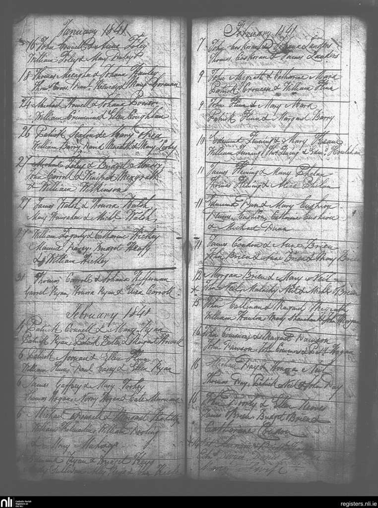 Galbally and Aherlow; County of Limerick, Tipperary; Diocese of Cashel and Emly. Marriages, Jan. 1841 to Feb. 1841