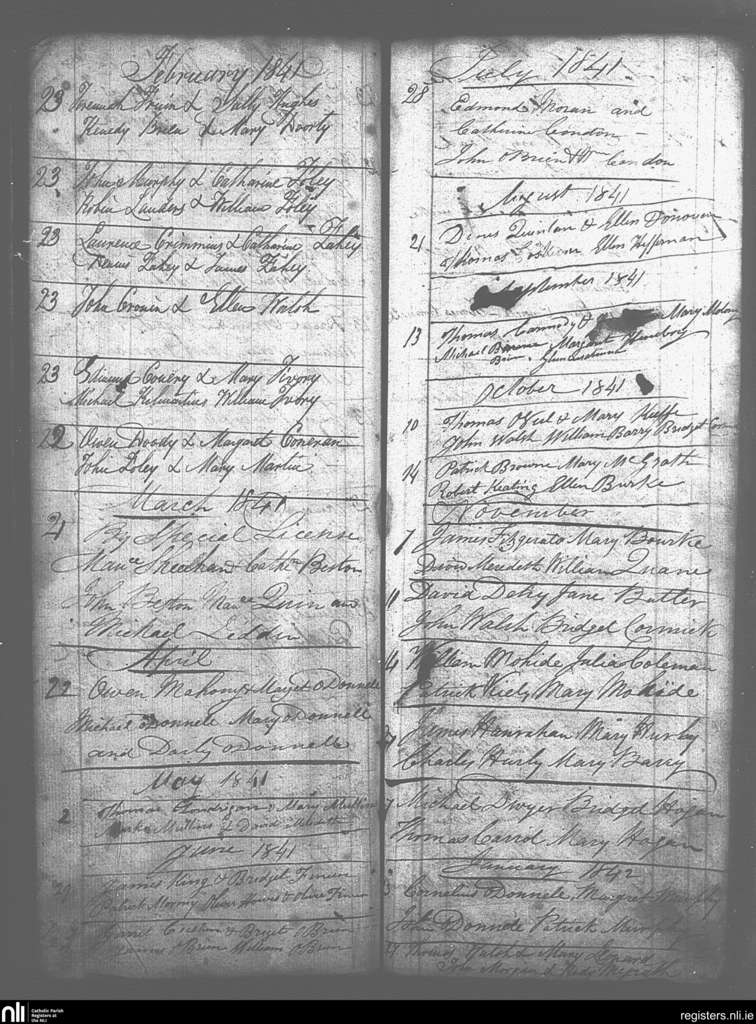 Galbally and Aherlow; County of Limerick, Tipperary; Diocese of Cashel and Emly. Marriages, Feb. 1841 to Jan. 1842
