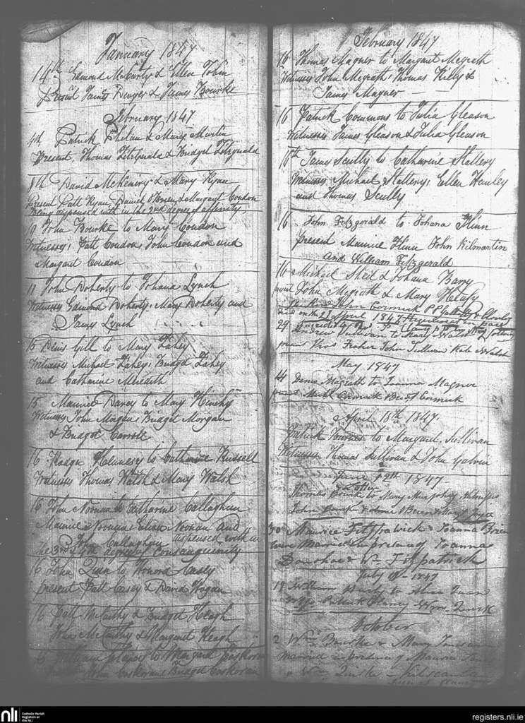 Galbally and Aherlow; County of Limerick, Tipperary; Diocese of Cashel and Emly. Marriages, Jan. 1847 to Oct. 1847
