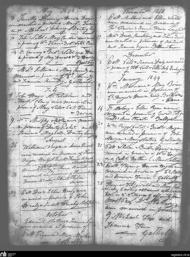 Galbally and Aherlow; County of Limerick, Tipperary; Diocese of Cashel and Emly. Marriages, May 1848 to Jan. 1849
