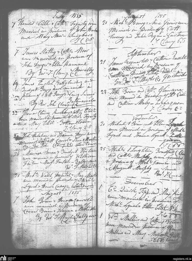 Galbally and Aherlow; County of Limerick, Tipperary; Diocese of Cashel and Emly. Marriages, July 1855 to Dec. 1855