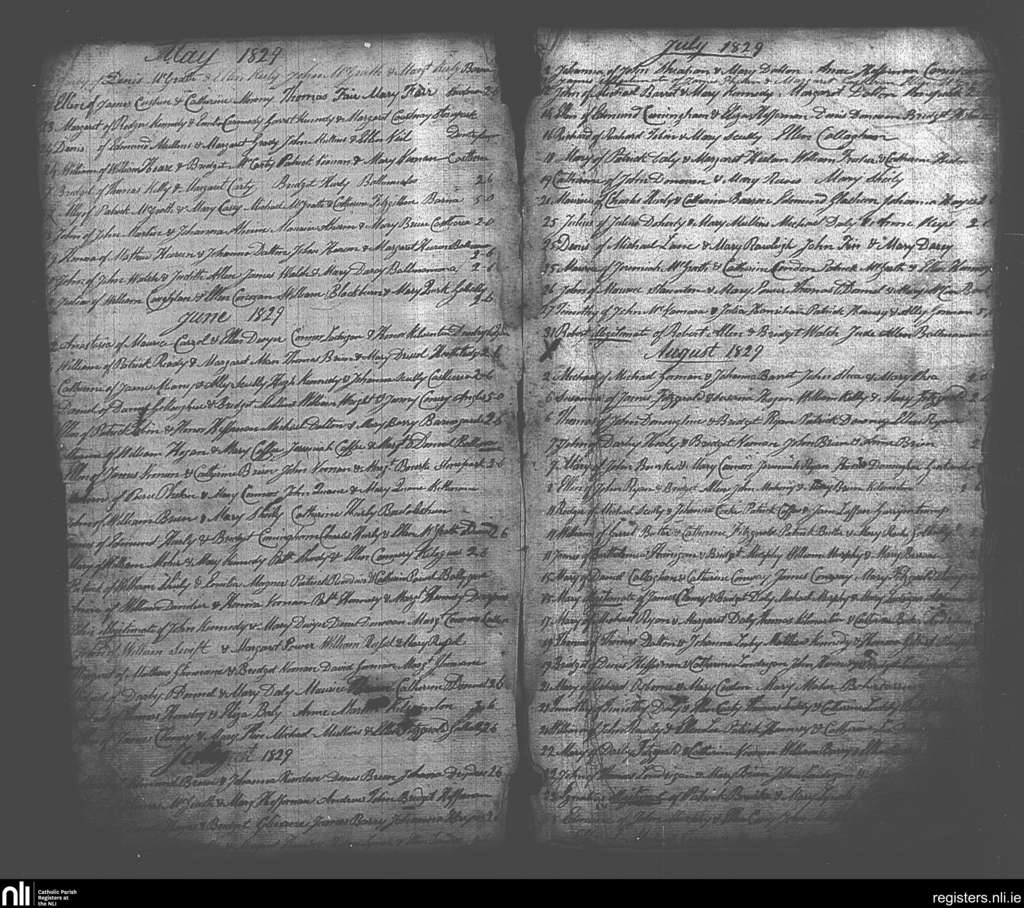Galbally and Aherlow; County of Limerick, Tipperary; Diocese of Cashel and Emly. Baptisms, May 1829 to Aug. 1829