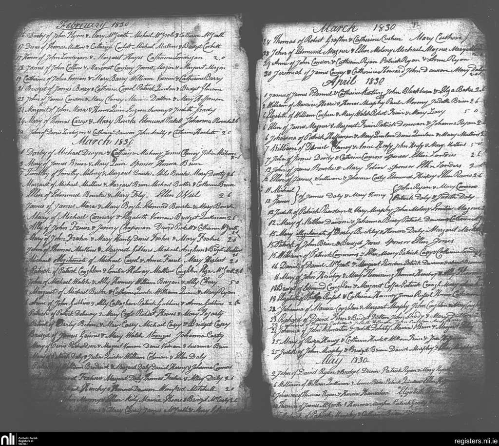 Galbally and Aherlow; County of Limerick, Tipperary; Diocese of Cashel and Emly. Baptisms, Feb. 1830 to May 1830