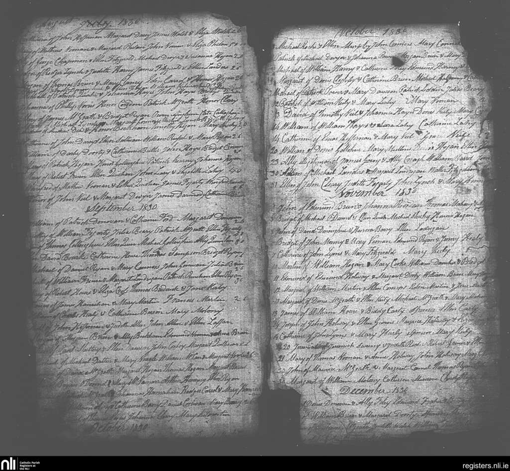 Galbally and Aherlow; County of Limerick, Tipperary; Diocese of Cashel and Emly. Baptisms, Aug. 1830 to Dec. 1830