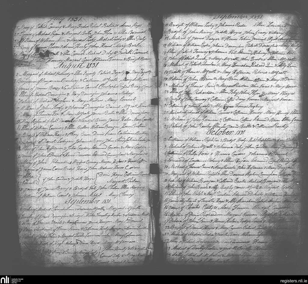 Galbally and Aherlow; County of Limerick, Tipperary; Diocese of Cashel and Emly. Baptisms, July 1831 to Oct. 1831