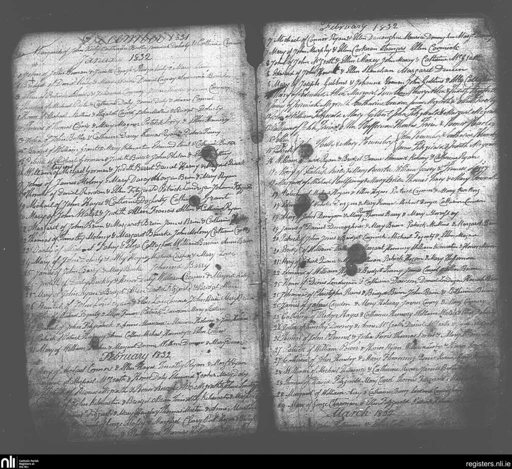 Galbally and Aherlow; County of Limerick, Tipperary; Diocese of Cashel and Emly. Baptisms, Dec. 1831 to Mar. 1832