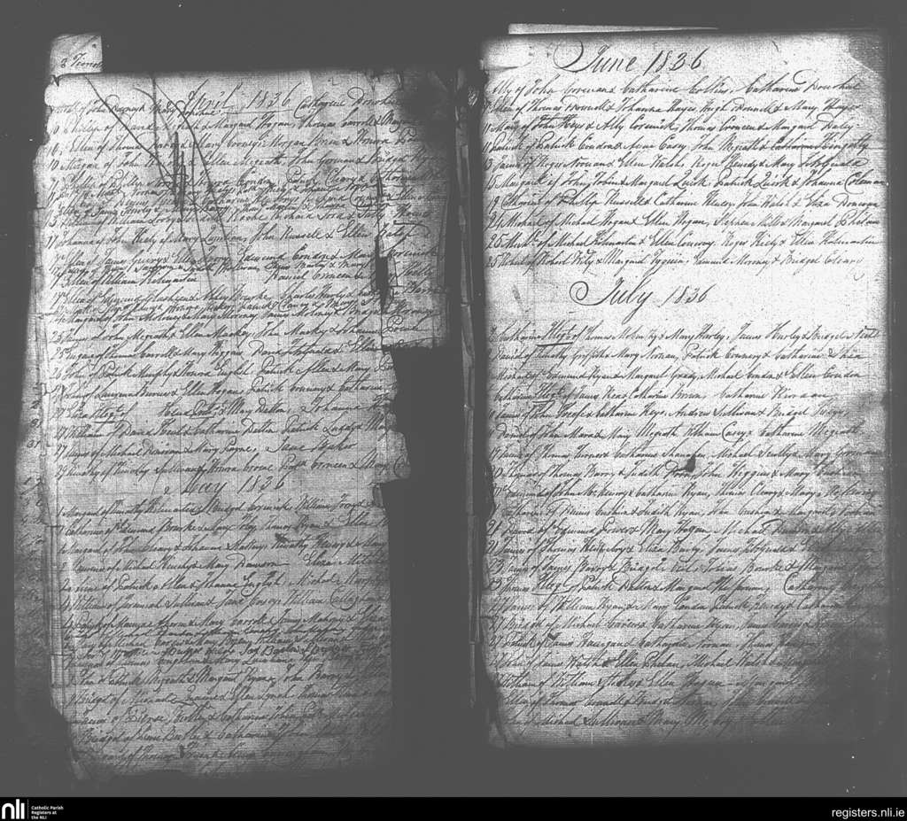 Galbally and Aherlow; County of Limerick, Tipperary; Diocese of Cashel and Emly. Baptisms, Apr. 1836 to July 1836