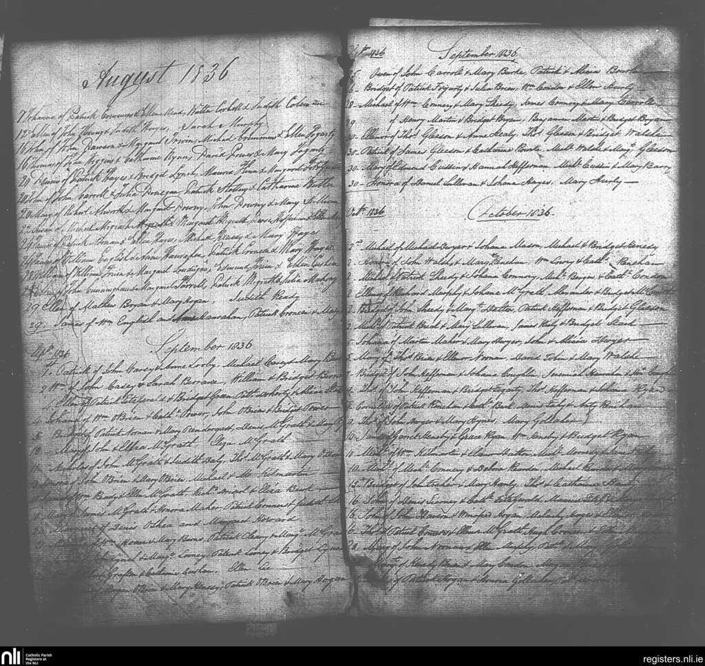 Galbally and Aherlow; County of Limerick, Tipperary; Diocese of Cashel and Emly. Baptisms, Aug. 1836 to Oct. 1836
