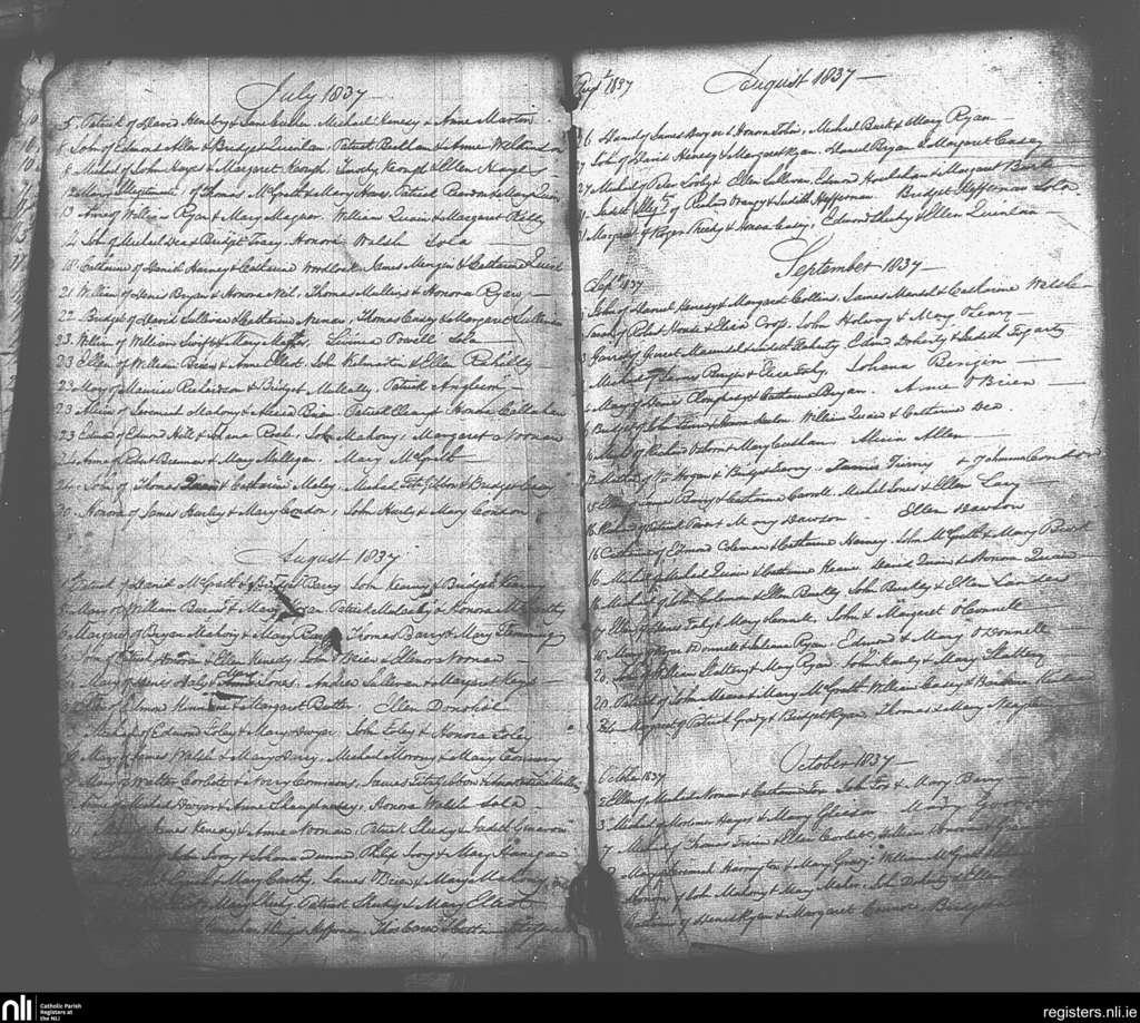 Galbally and Aherlow; County of Limerick, Tipperary; Diocese of Cashel and Emly. Baptisms, July 1837 to Oct. 1837