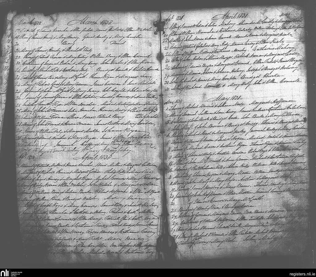 Galbally and Aherlow; County of Limerick, Tipperary; Diocese of Cashel and Emly. Baptisms, Mar. 1838 to May 1838