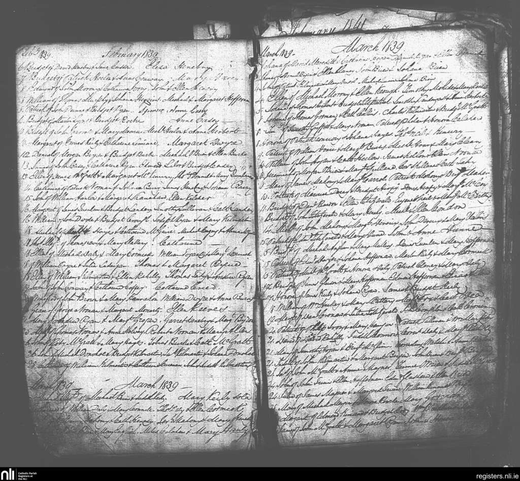 Galbally and Aherlow; County of Limerick, Tipperary; Diocese of Cashel and Emly. Baptisms, Feb. 1839 to Mar. 1839