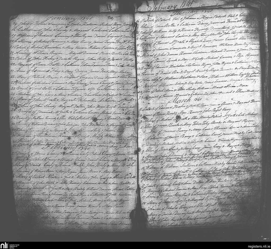 Galbally and Aherlow; County of Limerick, Tipperary; Diocese of Cashel and Emly. Baptisms, Jan. 1840 to Mar. 1840