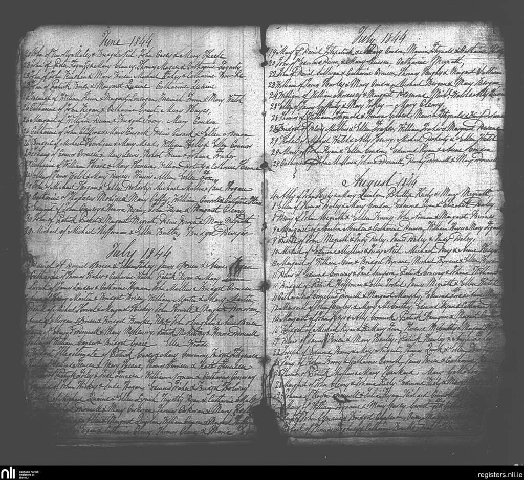Galbally and Aherlow; County of Limerick, Tipperary; Diocese of Cashel and Emly. Baptisms, June 1844 to Aug. 1844