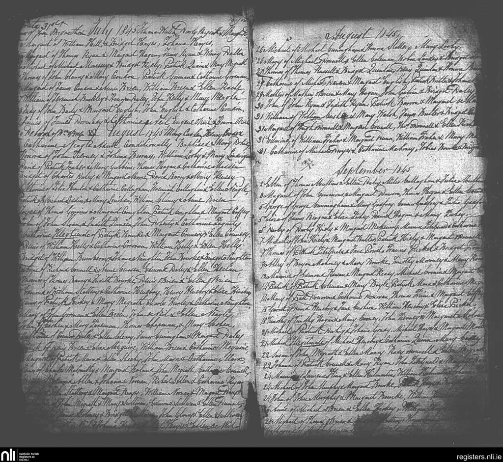 Galbally and Aherlow; County of Limerick, Tipperary; Diocese of Cashel and Emly. Baptisms, July 1845 to Sep. 1845