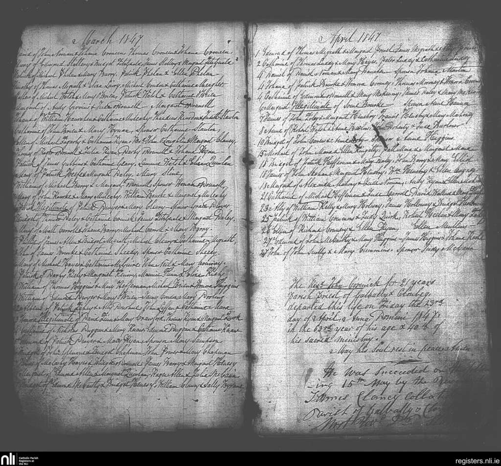 Galbally and Aherlow; County of Limerick, Tipperary; Diocese of Cashel and Emly. Baptisms, Mar. 1847 to Apr. 1847