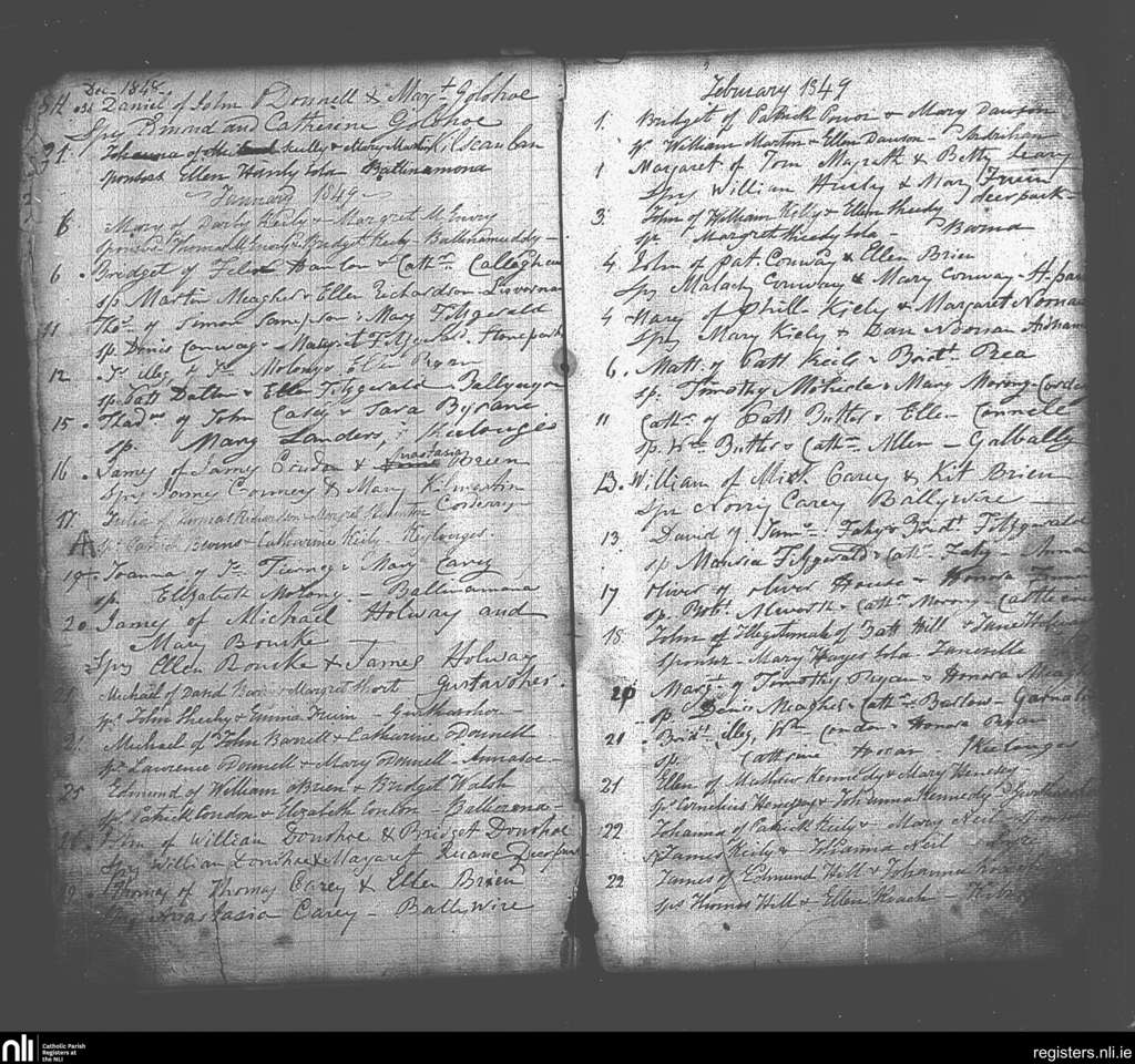 Galbally and Aherlow; County of Limerick, Tipperary; Diocese of Cashel and Emly. Baptisms, Dec. 1848 to Feb. 1849