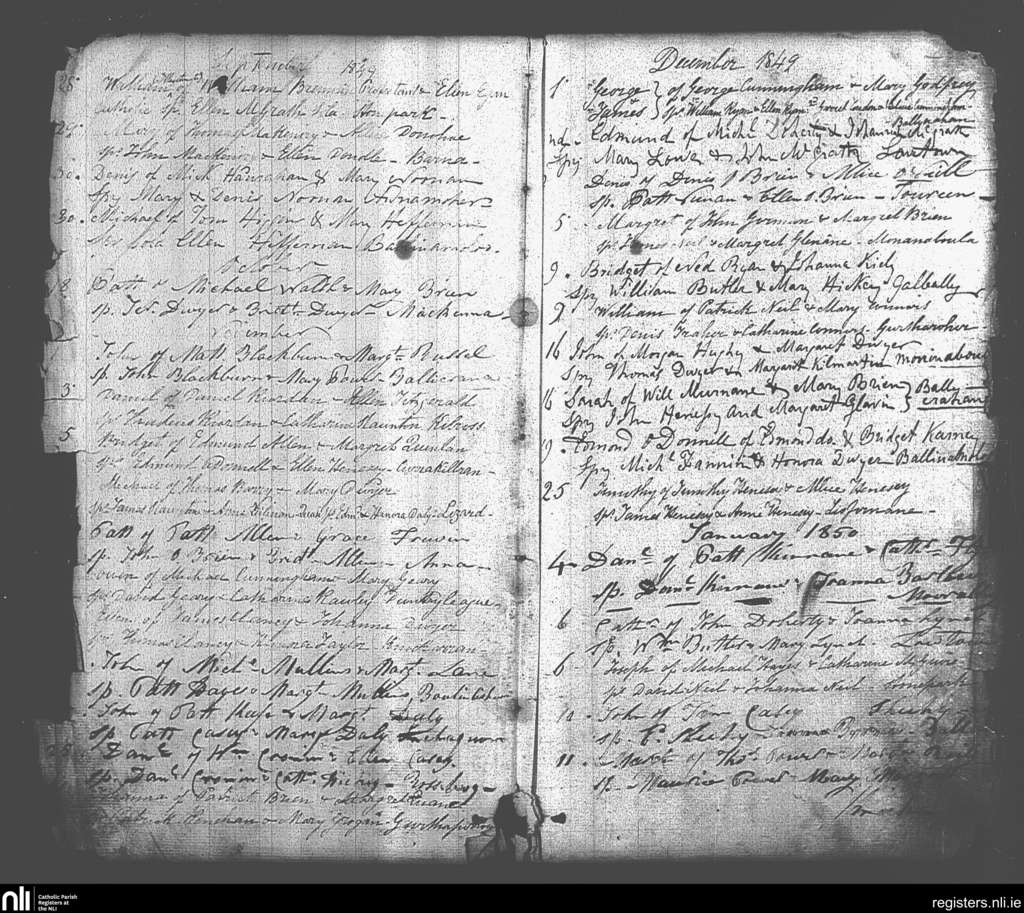 Galbally and Aherlow; County of Limerick, Tipperary; Diocese of Cashel and Emly. Baptisms, Sep. 1849 to Jan. 1850