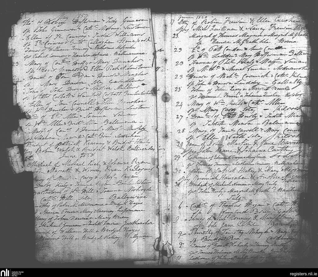 Galbally and Aherlow; County of Limerick, Tipperary; Diocese of Cashel and Emly. Baptisms, May 1850 to July 1850