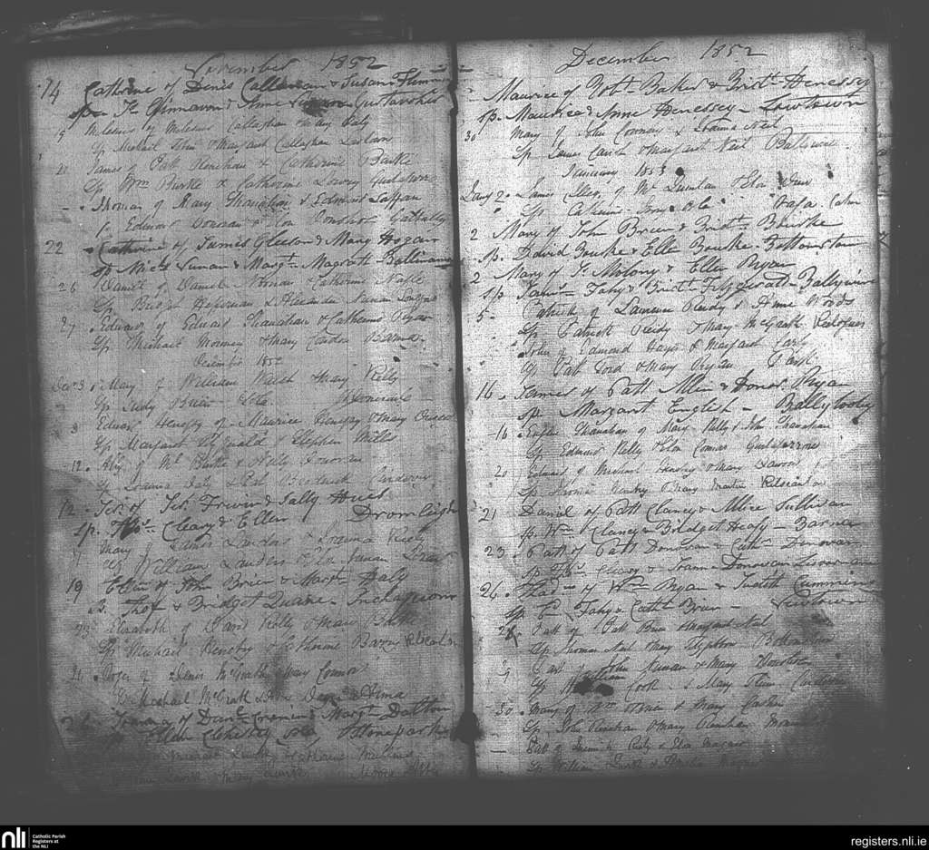 Galbally and Aherlow; County of Limerick, Tipperary; Diocese of Cashel and Emly. Baptisms, Nov. 1852 to Jan. 1853