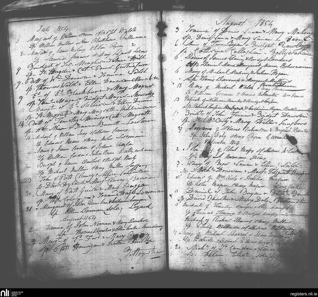 Galbally and Aherlow; County of Limerick, Tipperary; Diocese of Cashel and Emly. Baptisms, July 1854 to Sep. 1854