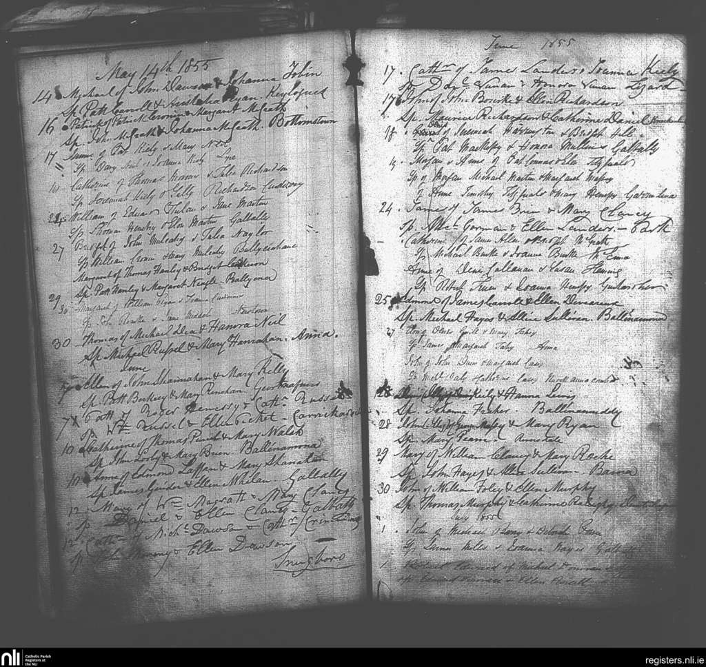 Galbally and Aherlow; County of Limerick, Tipperary; Diocese of Cashel and Emly. Baptisms, May 1855 to July 1855