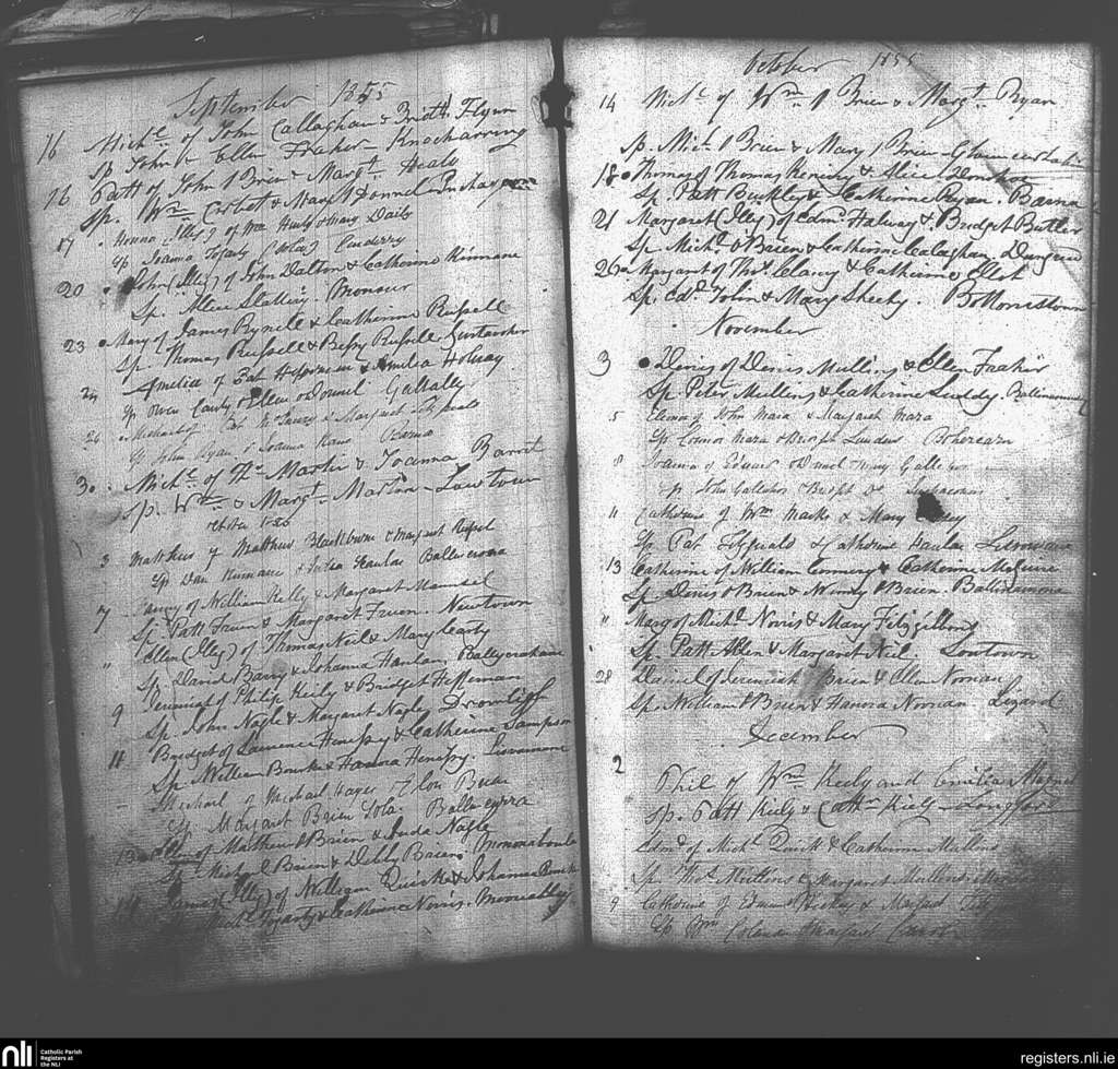 Galbally and Aherlow; County of Limerick, Tipperary; Diocese of Cashel and Emly. Baptisms, Sep. 1855 to Dec. 1855