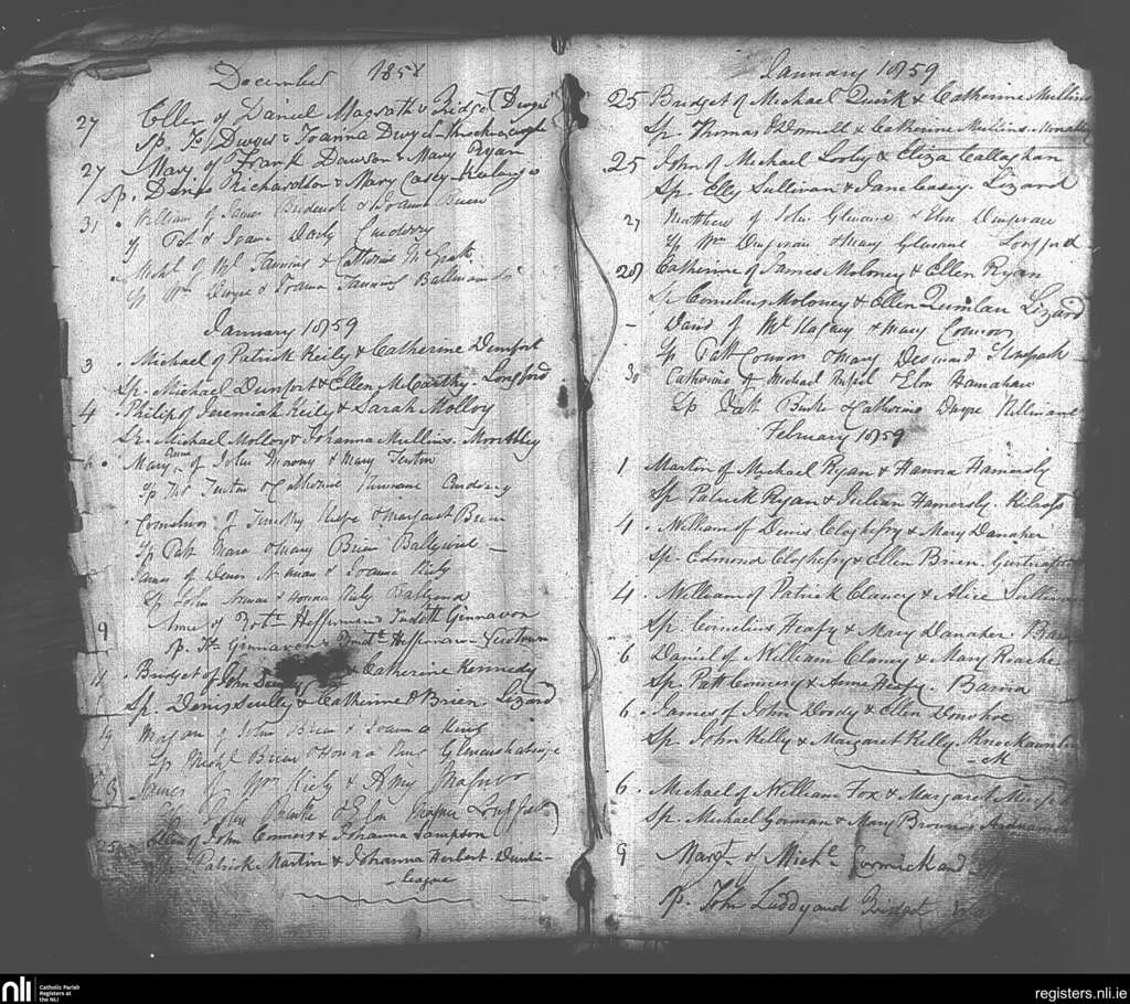 Galbally and Aherlow; County of Limerick, Tipperary; Diocese of Cashel and Emly. Baptisms, Dec. 1858 to Feb. 1859