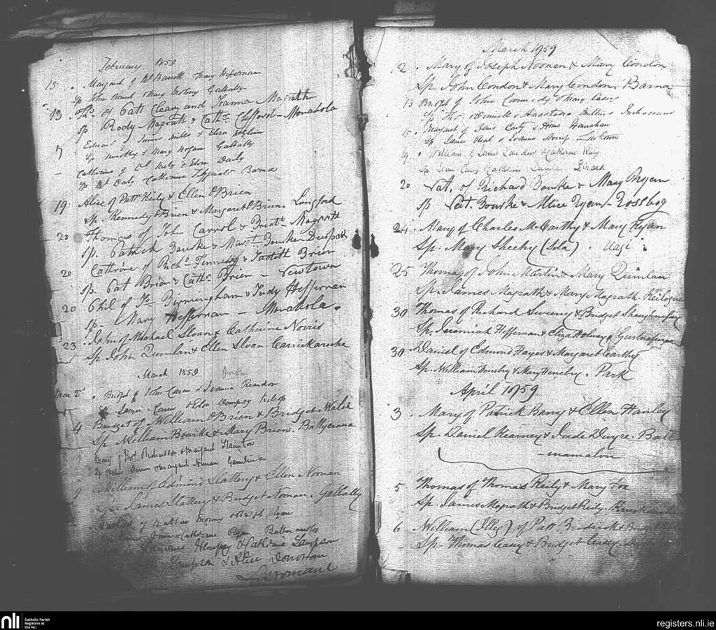 Galbally and Aherlow; County of Limerick, Tipperary; Diocese of Cashel and Emly. Baptisms, Feb. 1859 to Apr. 1859