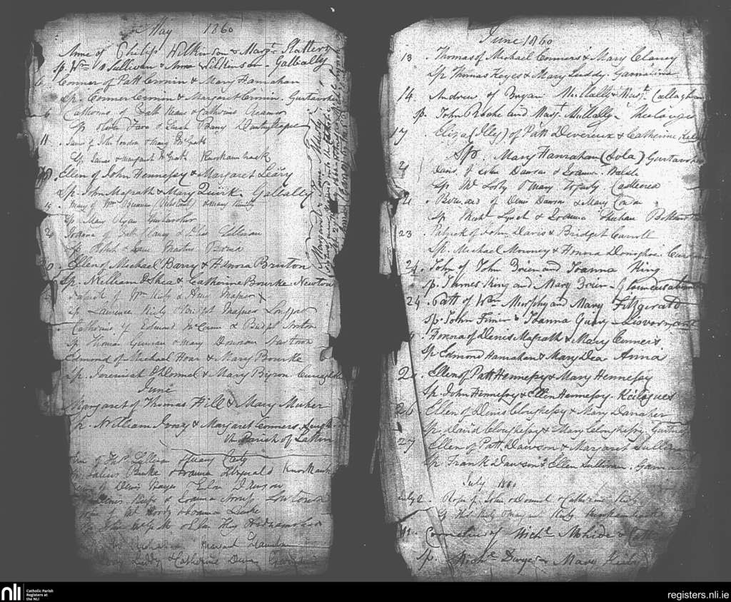 Galbally and Aherlow; County of Limerick, Tipperary; Diocese of Cashel and Emly. Baptisms, May 1860 to July 1860