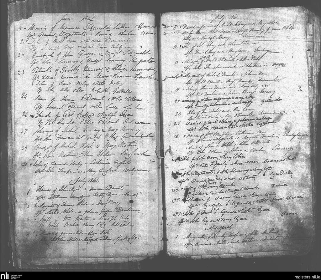 Galbally and Aherlow; County of Limerick, Tipperary; Diocese of Cashel and Emly. Baptisms, June 1861 to Aug. 1861