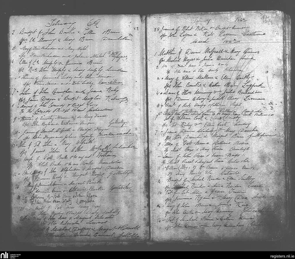 Galbally and Aherlow; County of Limerick, Tipperary; Diocese of Cashel and Emly. Baptisms, Feb. 1862 to Mar. 1862