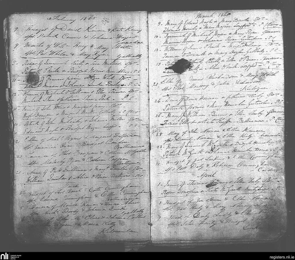 Galbally and Aherlow; County of Limerick, Tipperary; Diocese of Cashel and Emly. Baptisms, Feb. 1865 to Apr. 1865