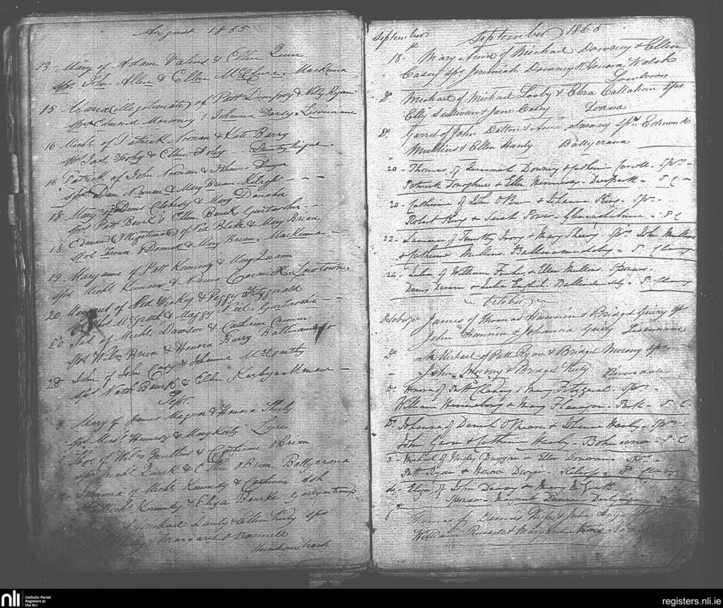 Galbally and Aherlow; County of Limerick, Tipperary; Diocese of Cashel and Emly. Baptisms, Aug. 1865 to Oct. 1865