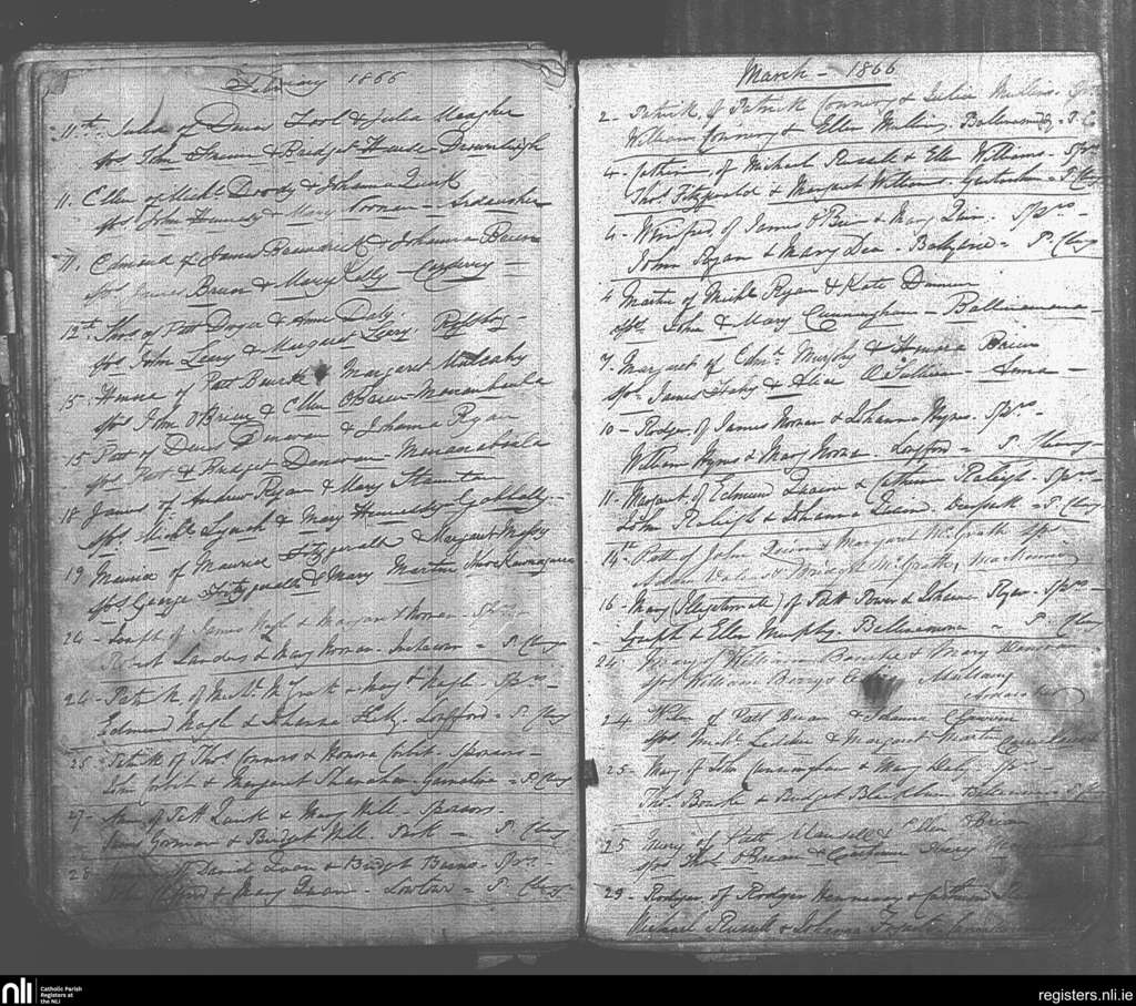 Galbally and Aherlow; County of Limerick, Tipperary; Diocese of Cashel and Emly. Baptisms, Feb. 1866 to Mar. 1866