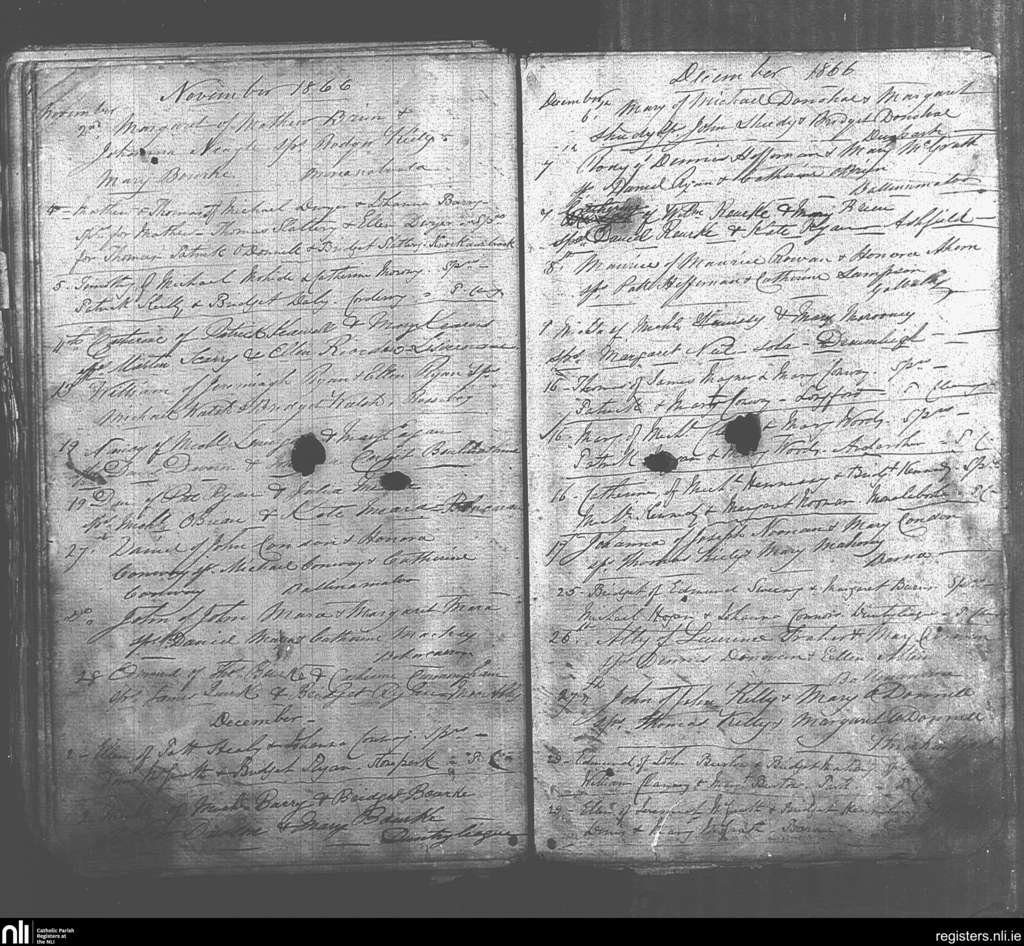 Galbally and Aherlow; County of Limerick, Tipperary; Diocese of Cashel and Emly. Baptisms, Nov. 1866 to Dec. 1866