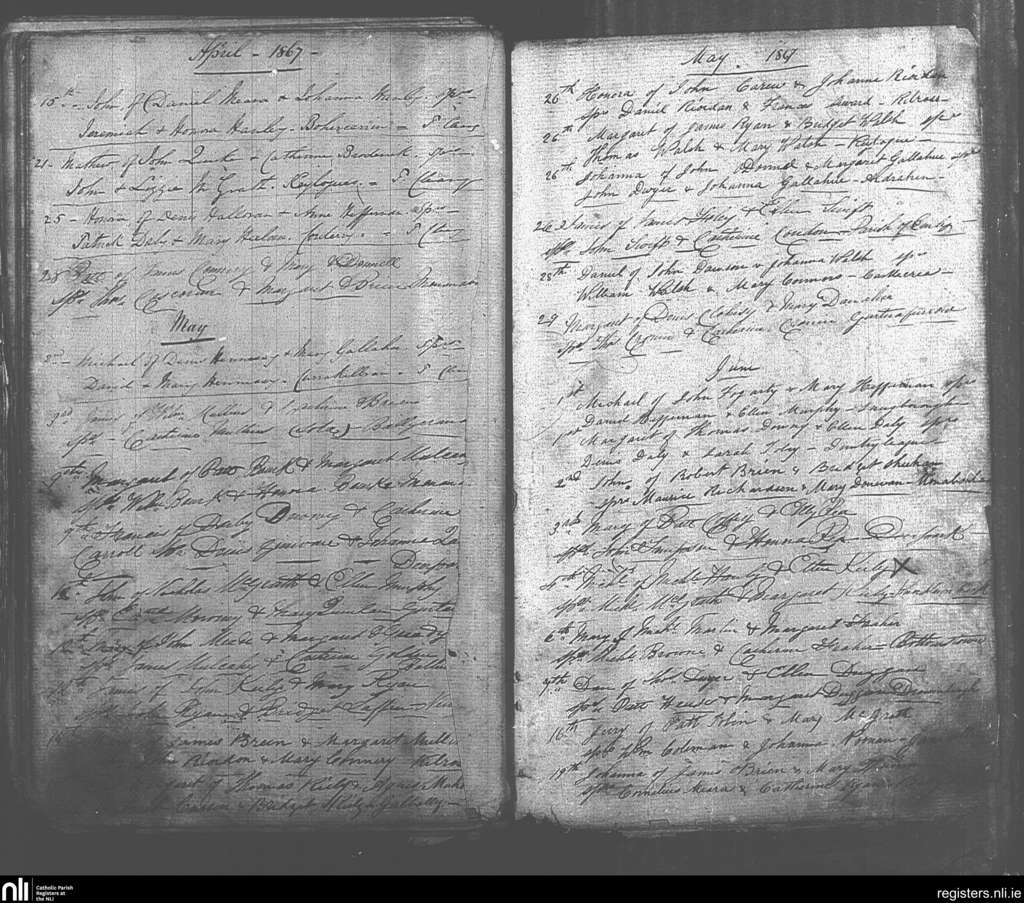 Galbally and Aherlow; County of Limerick, Tipperary; Diocese of Cashel and Emly. Baptisms, Apr. 1867 to June 1867
