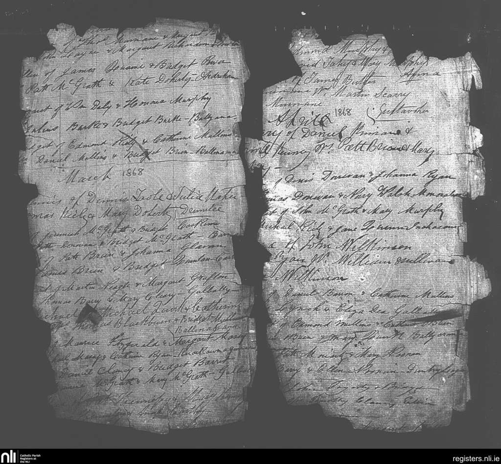 Galbally and Aherlow; County of Limerick, Tipperary; Diocese of Cashel and Emly. Baptisms, Feb. 1868 to Apr. 1868
