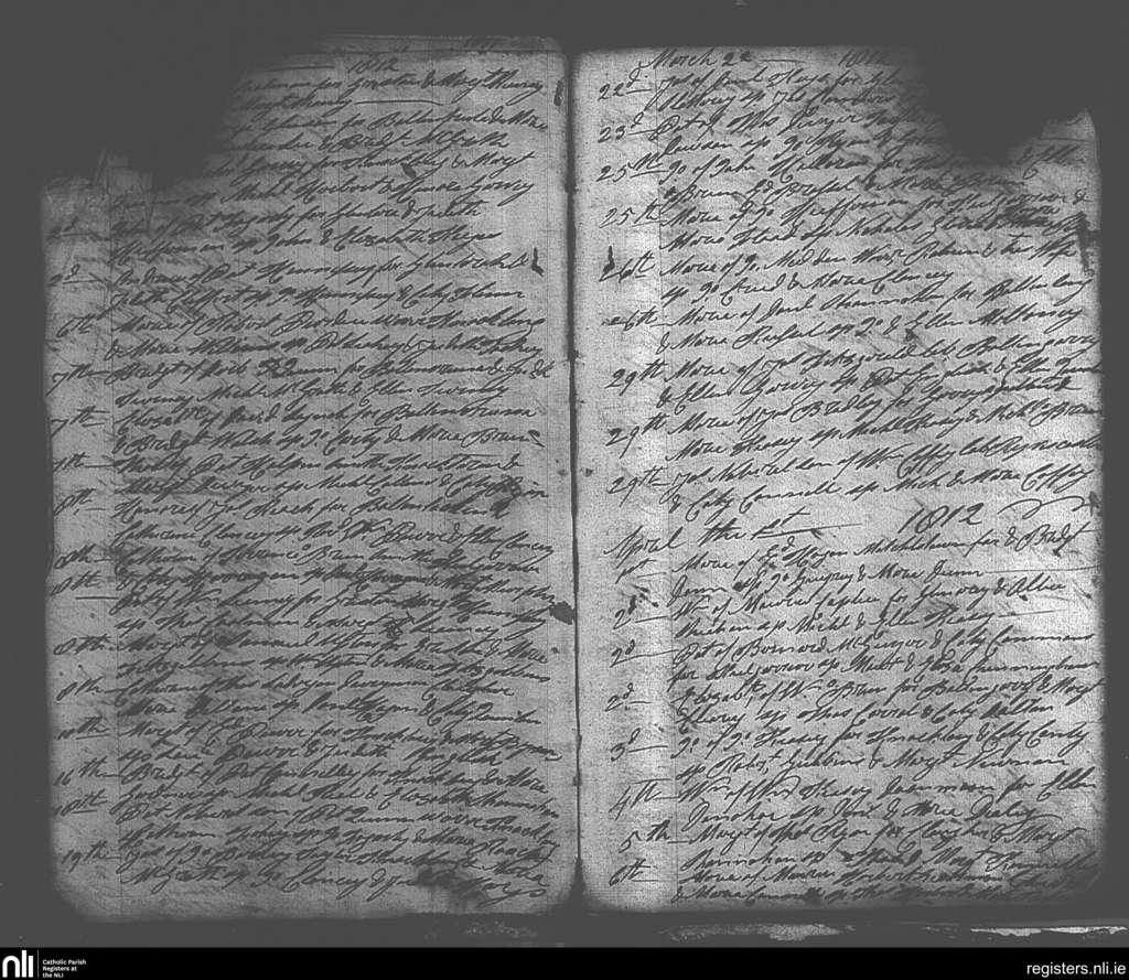 Knocklong and Glenbrohane; County of Limerick; Diocese of Cashel and Emly. Baptisms, Feb. 1812 to Apr. 1812