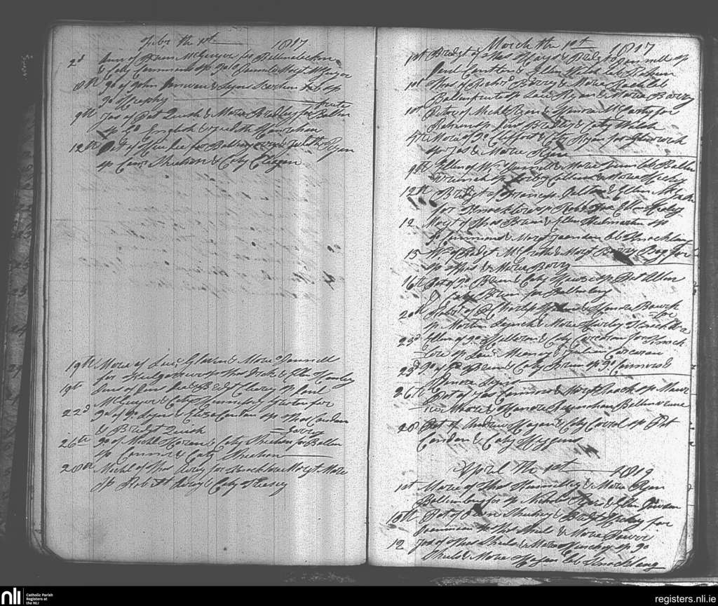 Knocklong and Glenbrohane; County of Limerick; Diocese of Cashel and Emly. Baptisms, Feb. 1817 to Apr. 1817