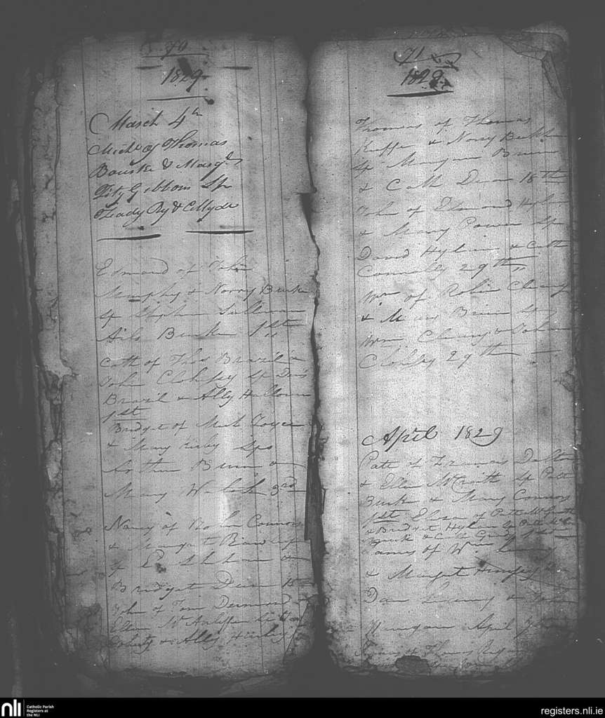 Knocklong and Glenbrohane; County of Limerick; Diocese of Cashel and Emly. Baptisms, Mar. 1829 to Apr. 1829