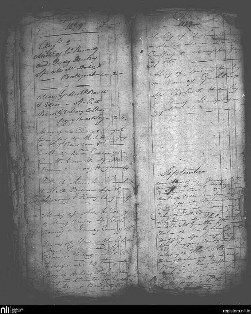 Knocklong and Glenbrohane; County of Limerick; Diocese of Cashel and Emly. Baptisms, Aug. 1829 to Sep. 1829