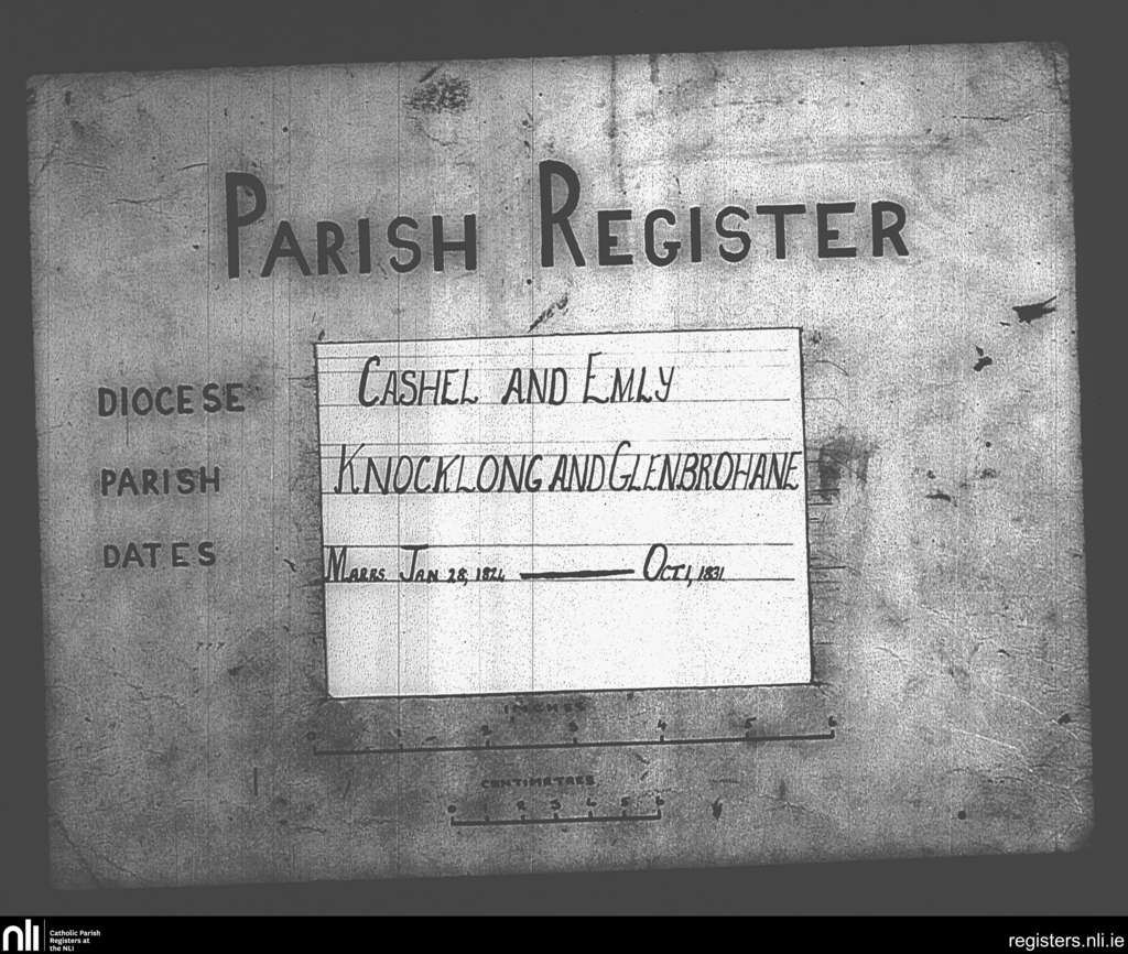 Knocklong and Glenbrohane; County of Limerick; Diocese of Cashel and Emly. Marriages