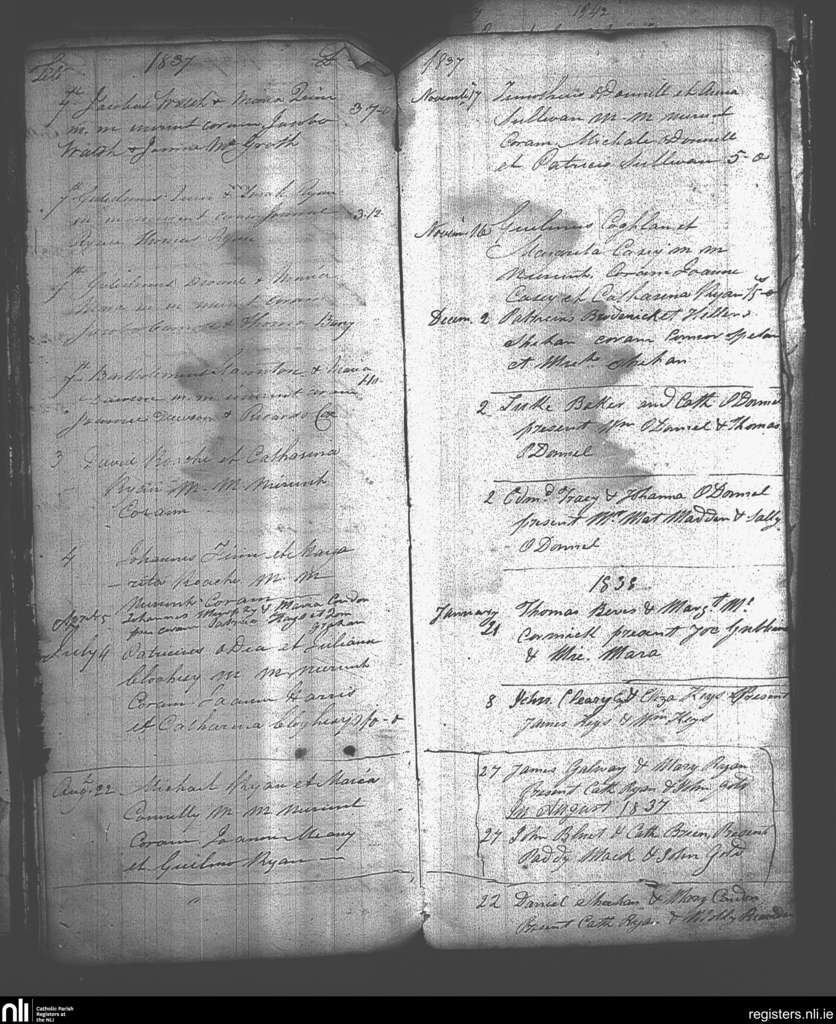 Knocklong and Glenbrohane; County of Limerick; Diocese of Cashel and Emly. Marriages, Feb. 1837 to Jan. 1838