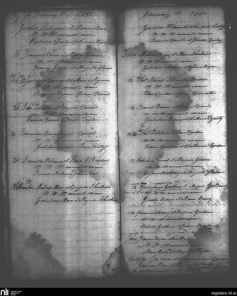 Knocklong and Glenbrohane; County of Limerick; Diocese of Cashel and Emly. Marriages, Feb. 1849 to July 1850