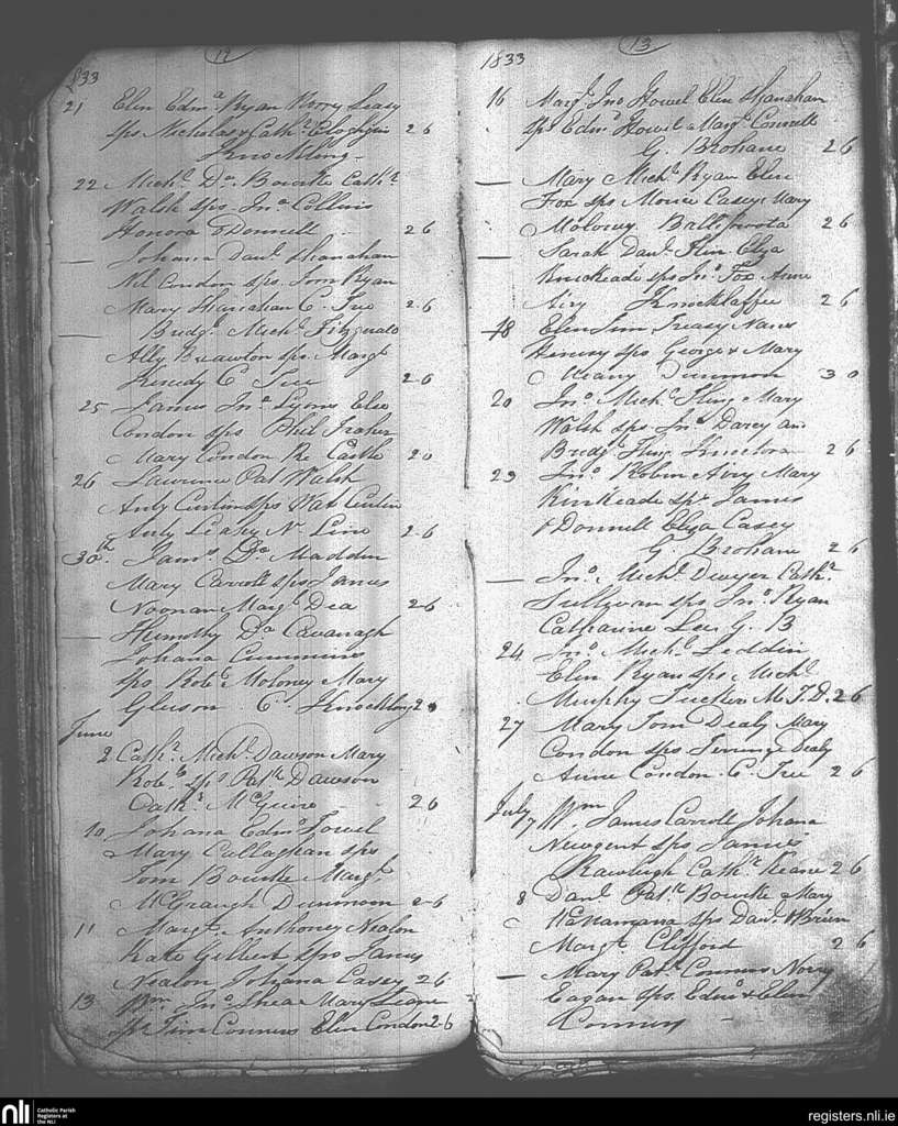 Knocklong and Glenbrohane; County of Limerick; Diocese of Cashel and Emly. Baptisms, May 1833 to July 1833