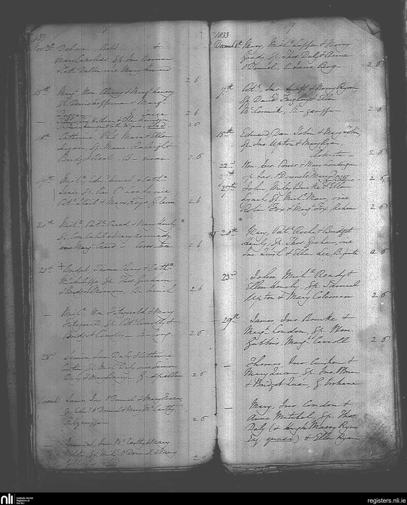 Knocklong and Glenbrohane; County of Limerick; Diocese of Cashel and Emly. Baptisms, Nov. 1833 to Dec. 1833