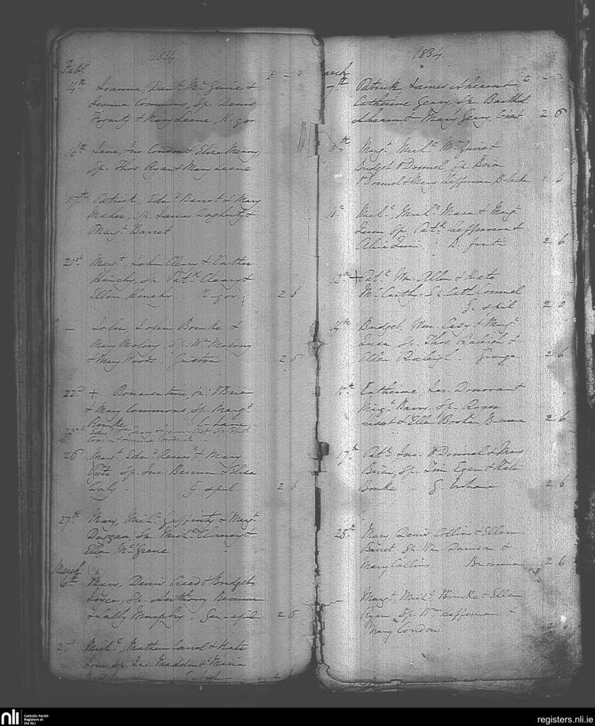 Knocklong and Glenbrohane; County of Limerick; Diocese of Cashel and Emly. Baptisms, Feb. 1834 to Mar. 1834
