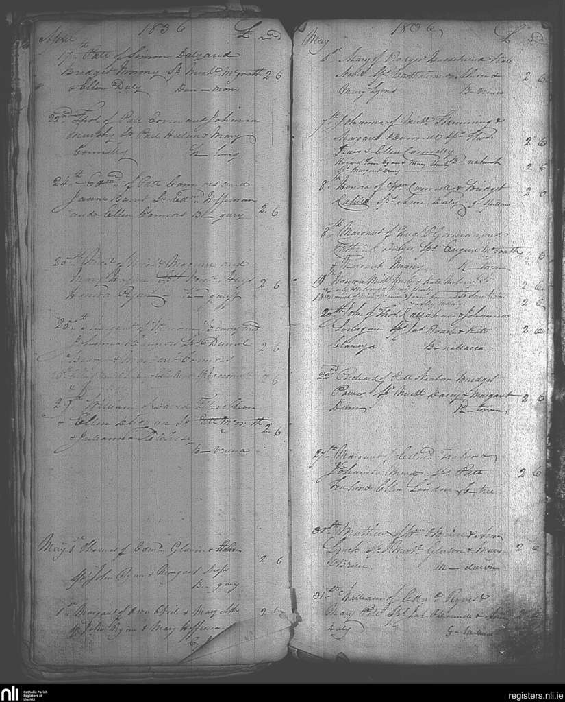 Knocklong and Glenbrohane; County of Limerick; Diocese of Cashel and Emly. Baptisms, Apr. 1836 to May 1836