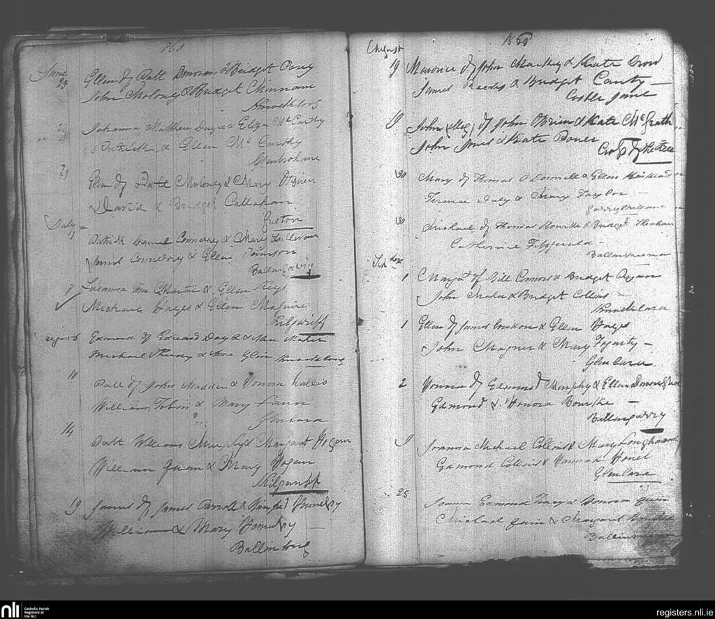 Knocklong and Glenbrohane; County of Limerick; Diocese of Cashel and Emly. Baptisms, June 1860 to Sep. 1860